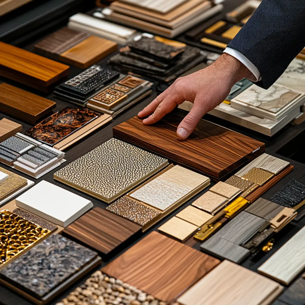 Select from our curated collection of high-quality materials and finishes, including elegant wood tones, sleek metals, and luxurious accents.